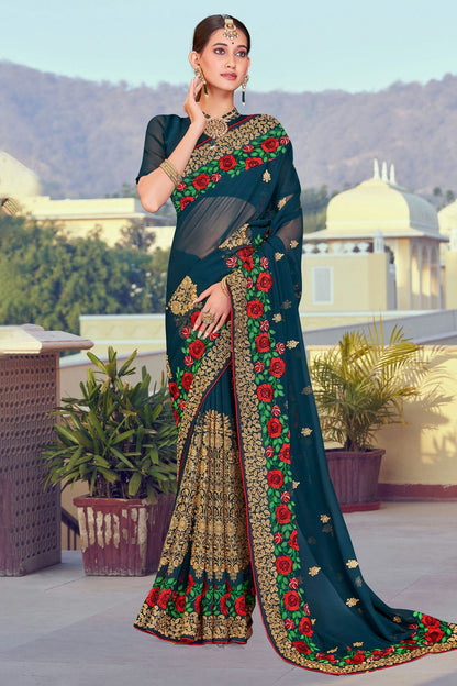 This Georgette Designer Saree In Teal Colour is a great way to show off your style and comfort. You can feel relaxed by wearing it at any function.