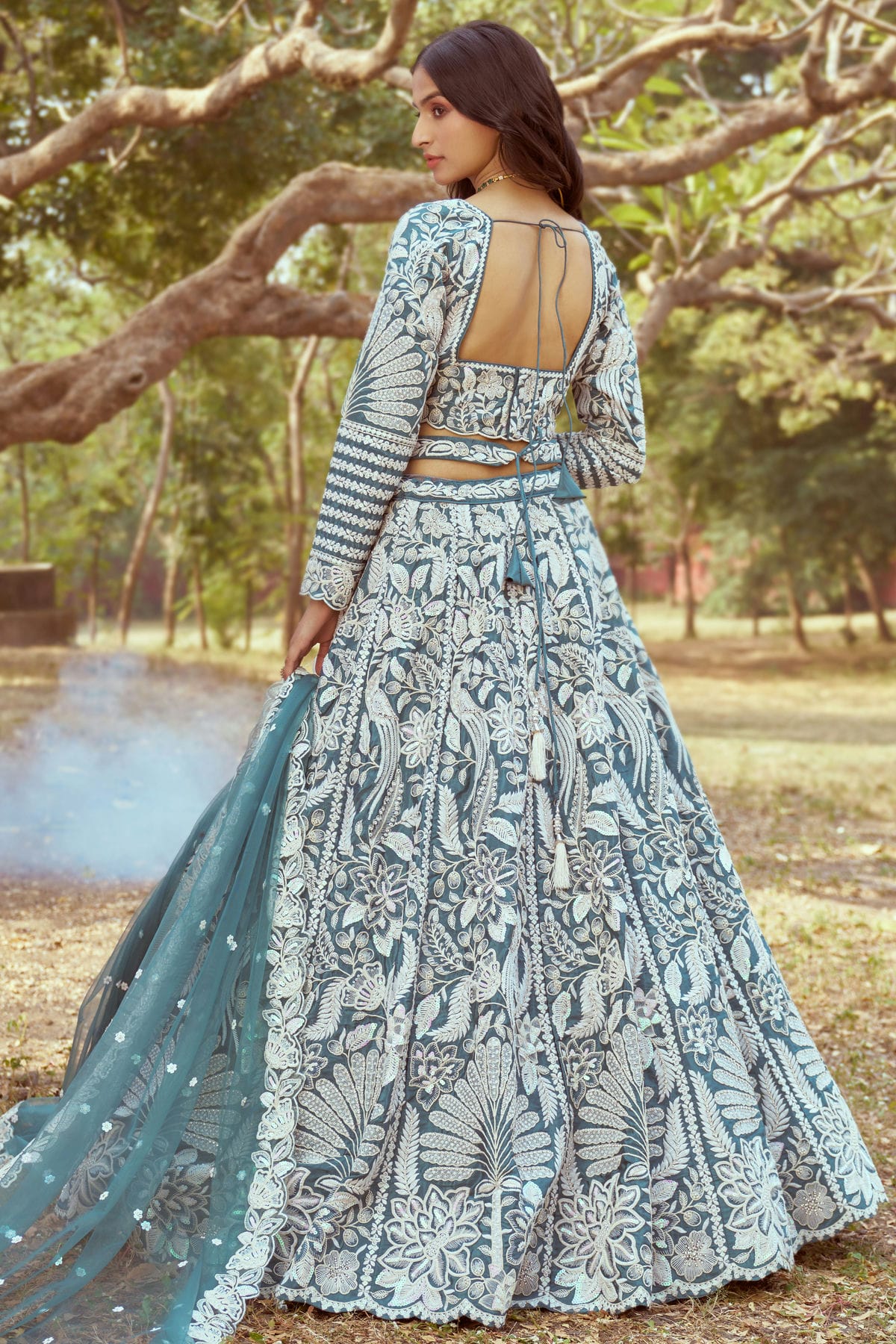 Teal Colour Satin Embroidery Lehenga Choli VSLC1111384