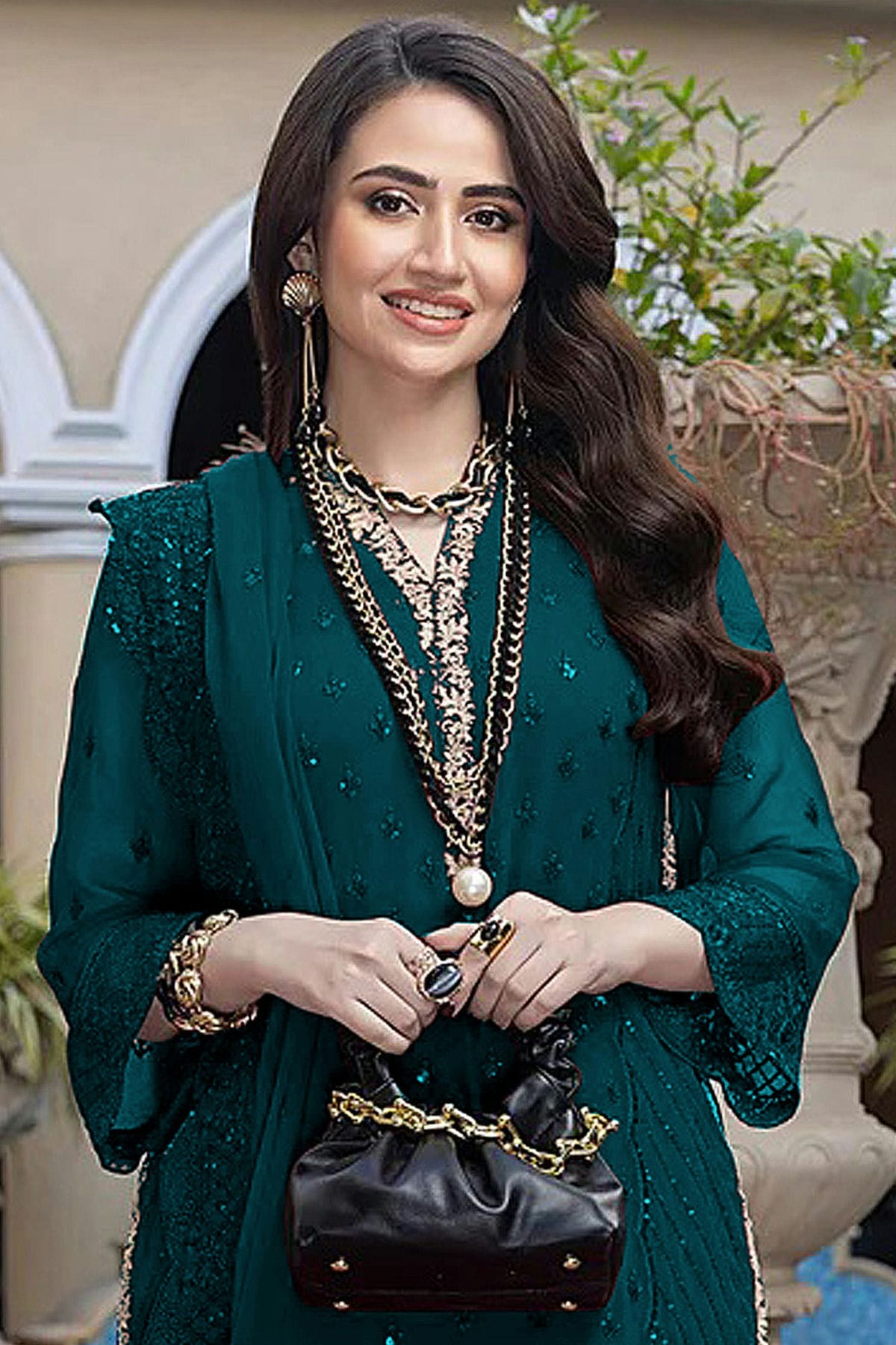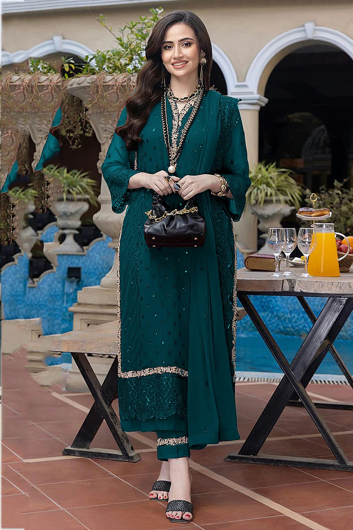 This Faux Georgette Pakistani Suit In Teal Colour is a great way to show off your style and comfort. You can feel relaxed by wearing it at any function.