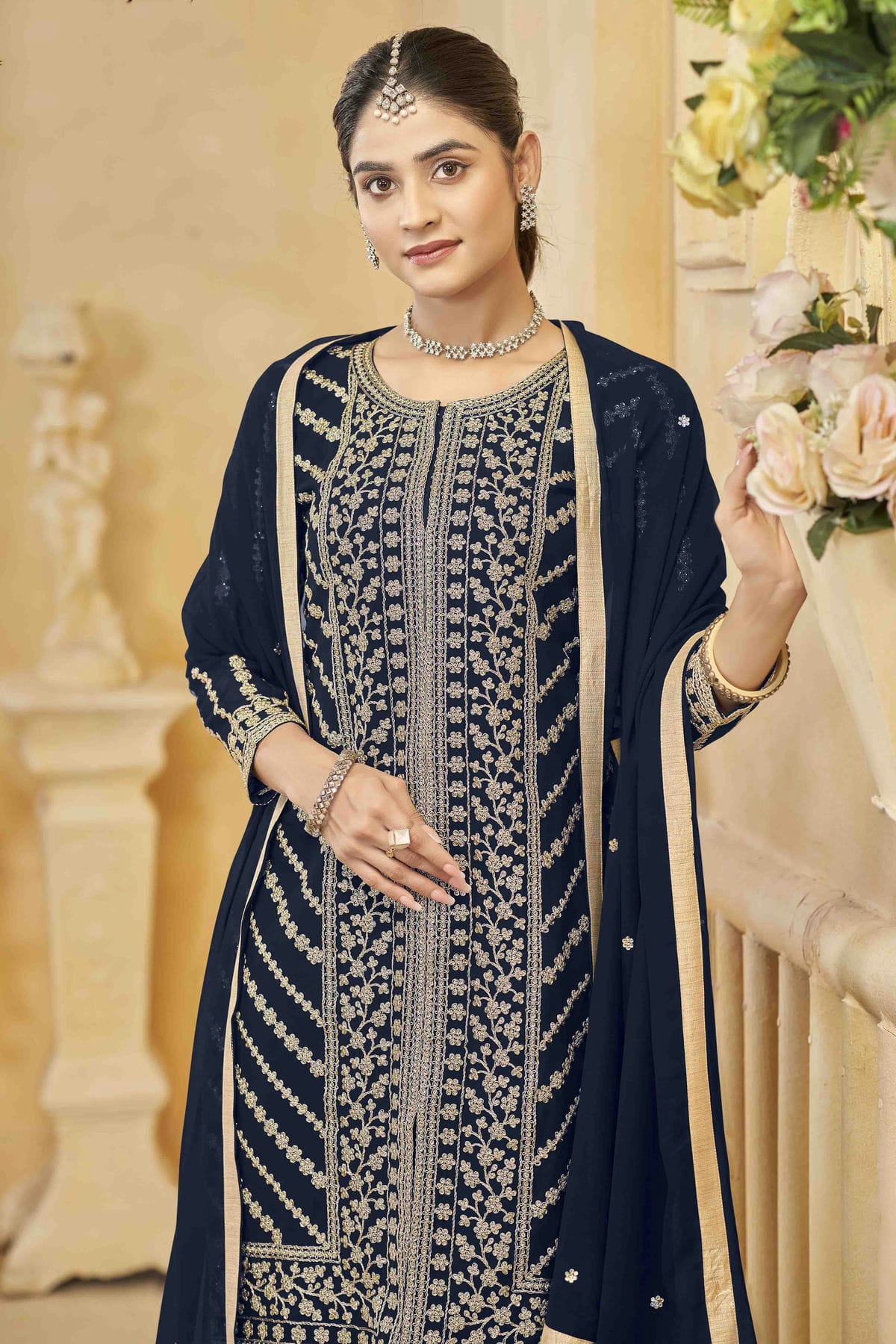 This Faux Georgette Sharara Suit In Teal Colour is a great way to show off your style and comfort. You can feel relaxed by wearing it at any function.