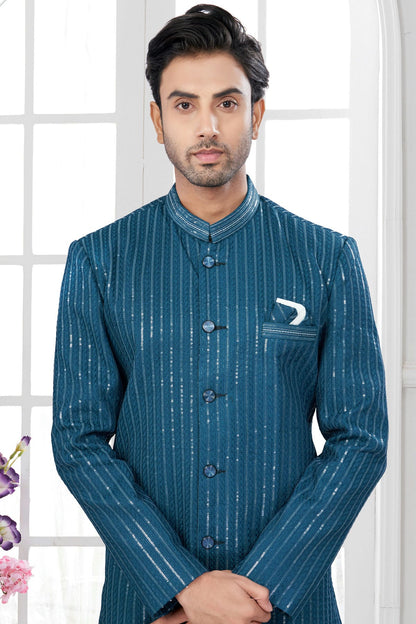 Teal Colour Silk Dupion Sherwani VSSH1040638
