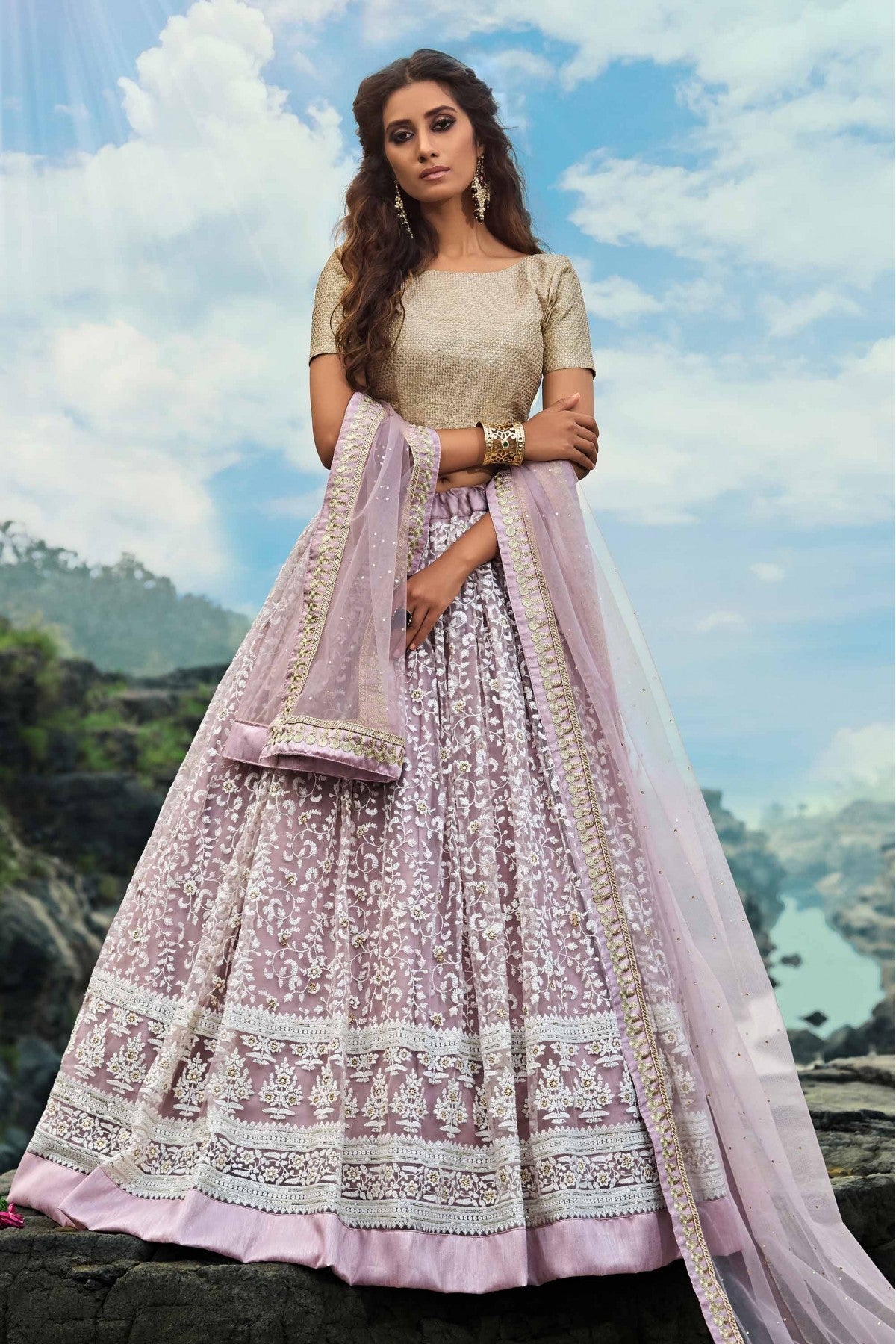 Lilac Colour Soft Net Fabric Party Wear Lehenga Choli Comes With Matching Blouse. This Lehenga Choli Is Crafted With Thread Work,Zari Work. This Lehenga Choli Comes With Unstitched Blouse Which Can Be Stitched Up To Size 42.