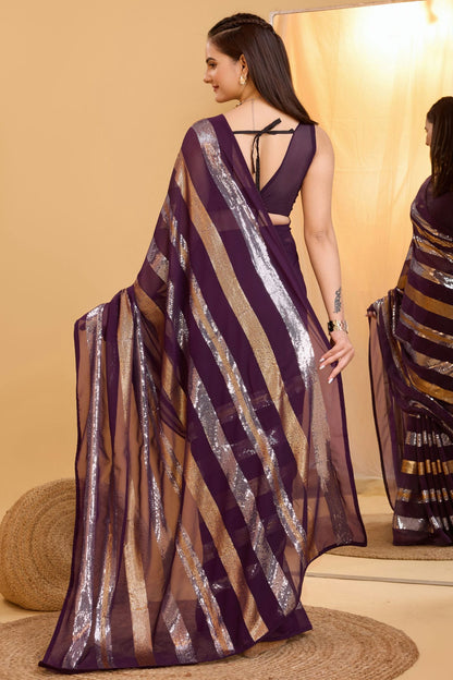 This Georgette Saree In Wine Colour is a great way to show off your style and comfort. You can feel relaxed by wearing it at any function.