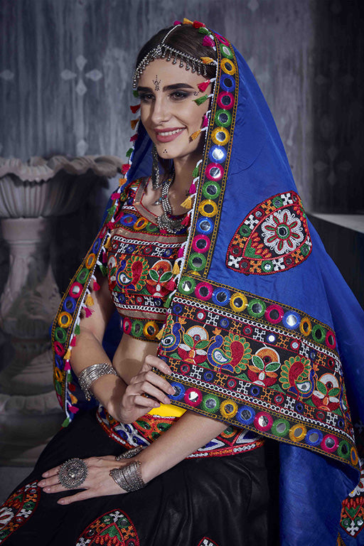 Yellow And Black Colour Art Silk Navratri Lehenga Choli VSLC1240063
