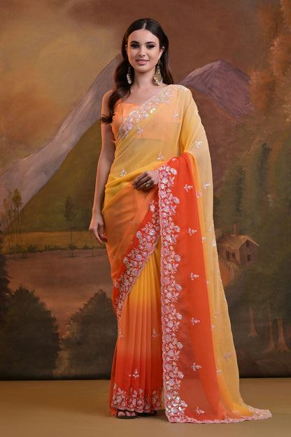 This Georgette Saree In Yellow Colour is a great way to show off your style and comfort. You can feel relaxed by wearing it at any function.