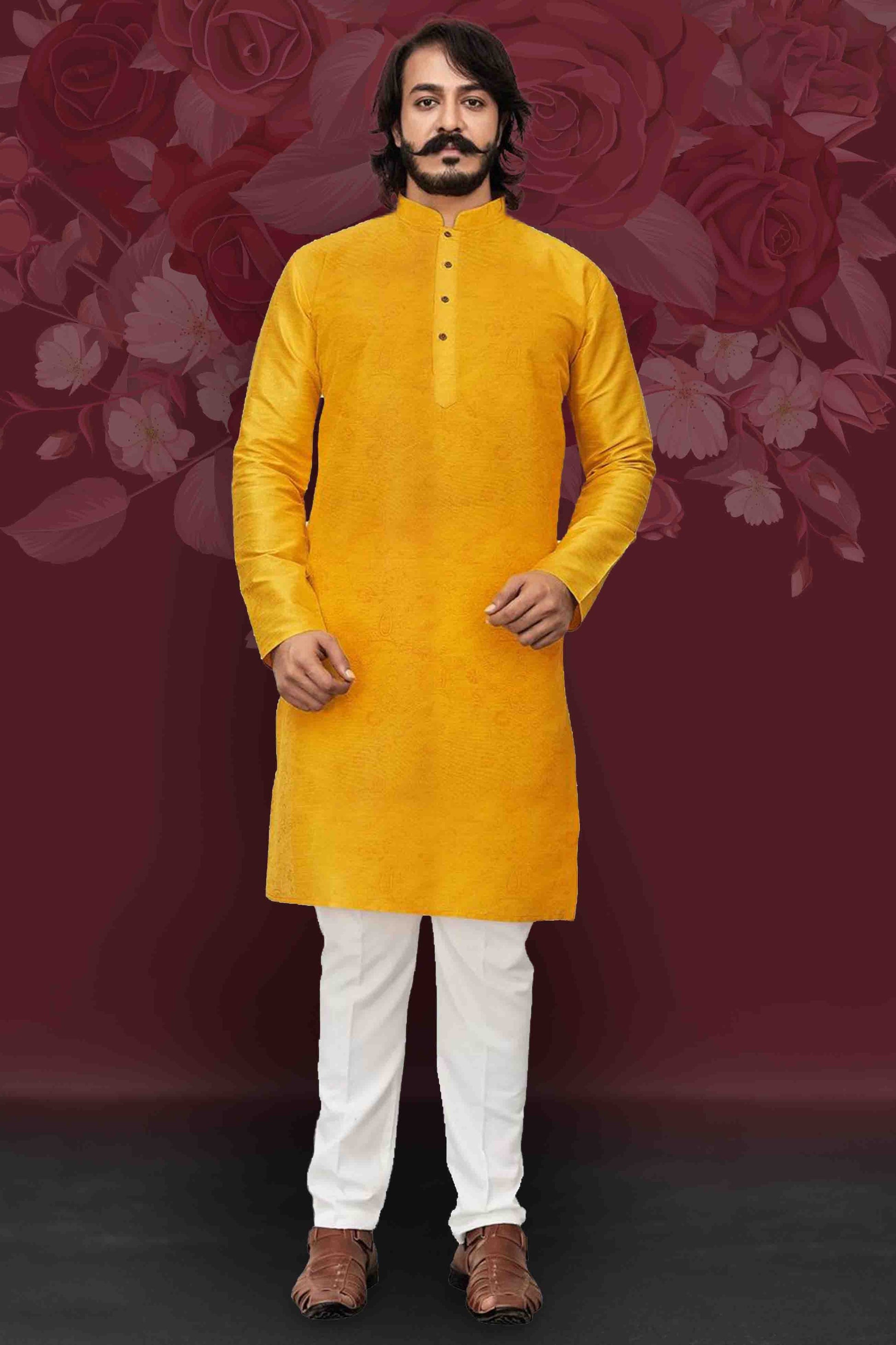 This Art Silk Kurta Pajama In Yellow Colour is a great way to show off your style and comfort. You can feel relaxed by wearing it at any function.